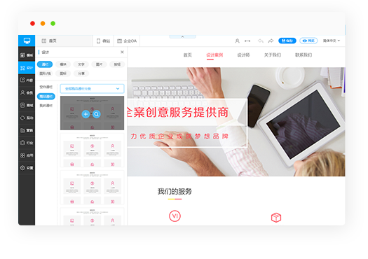 根据自己喜好打造网站专属风格,修改图文,创建模块,更改模板背景